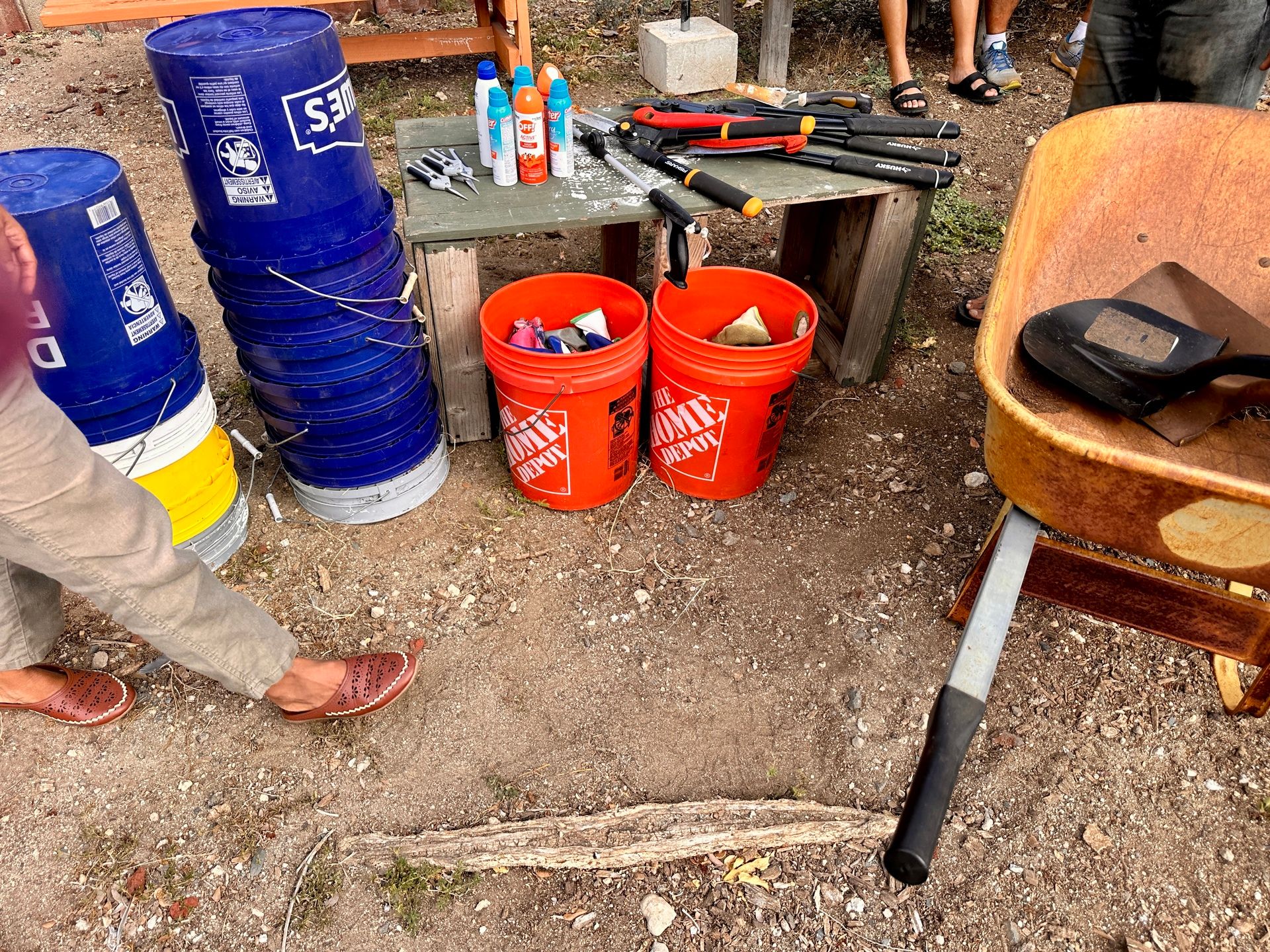 Volunteers are asked to bring water in a reusable bottle and to wear sunscreen, hat, long plants and sleeves, and natural bug repellent. They do have garden gloves as well as tools for volunteers, but if you’re particular about such things, you’re welcome to bring your own.