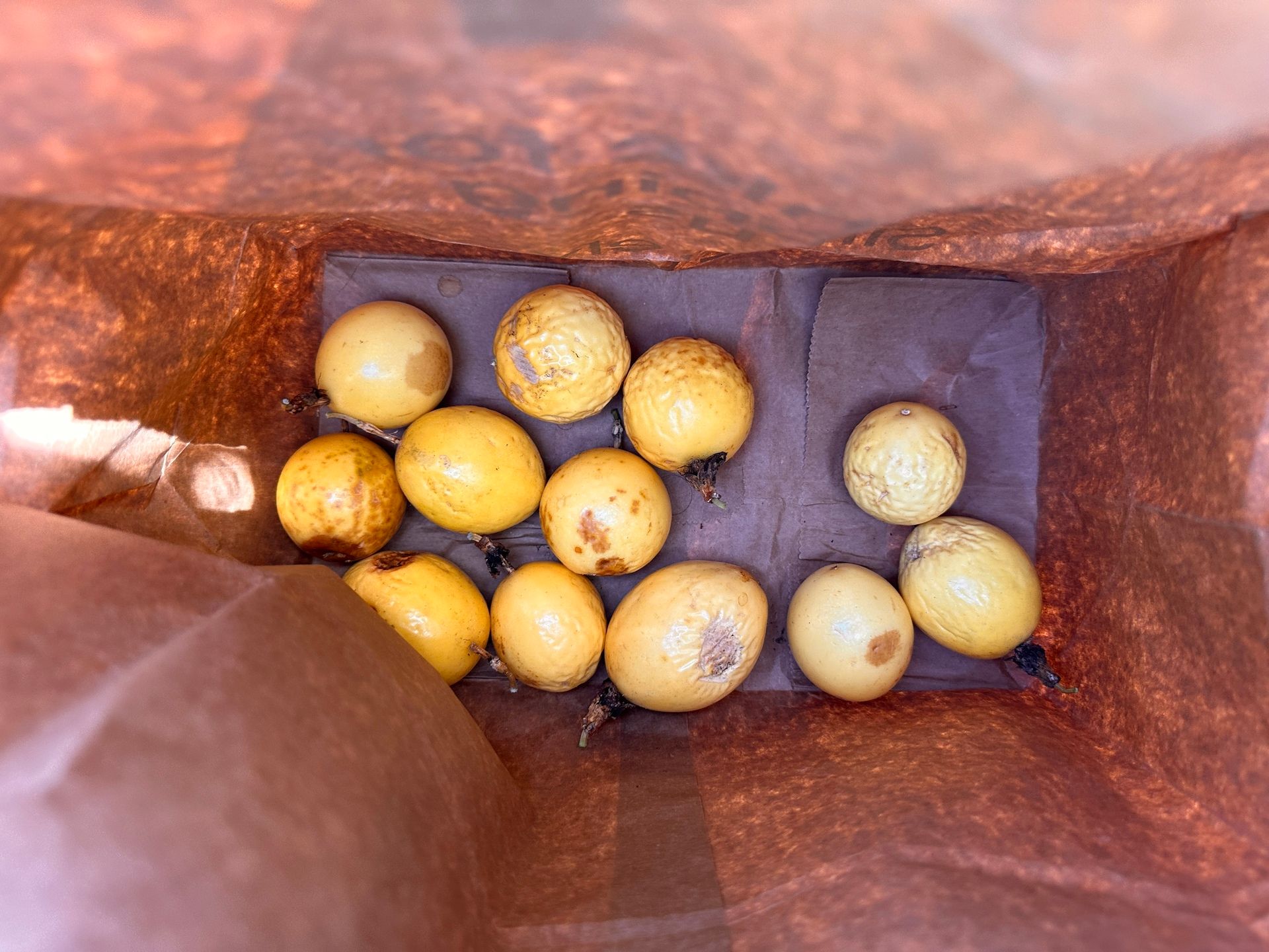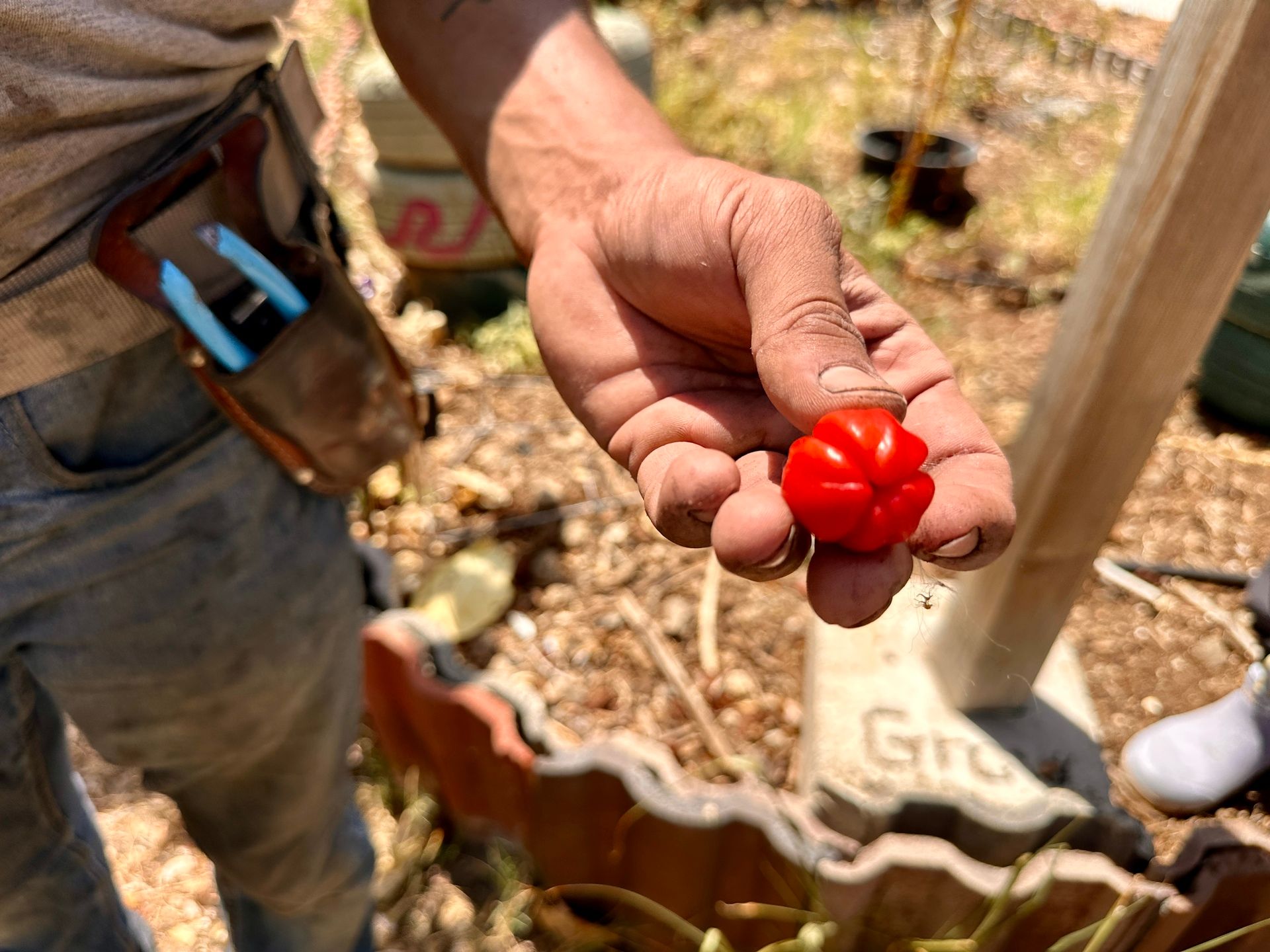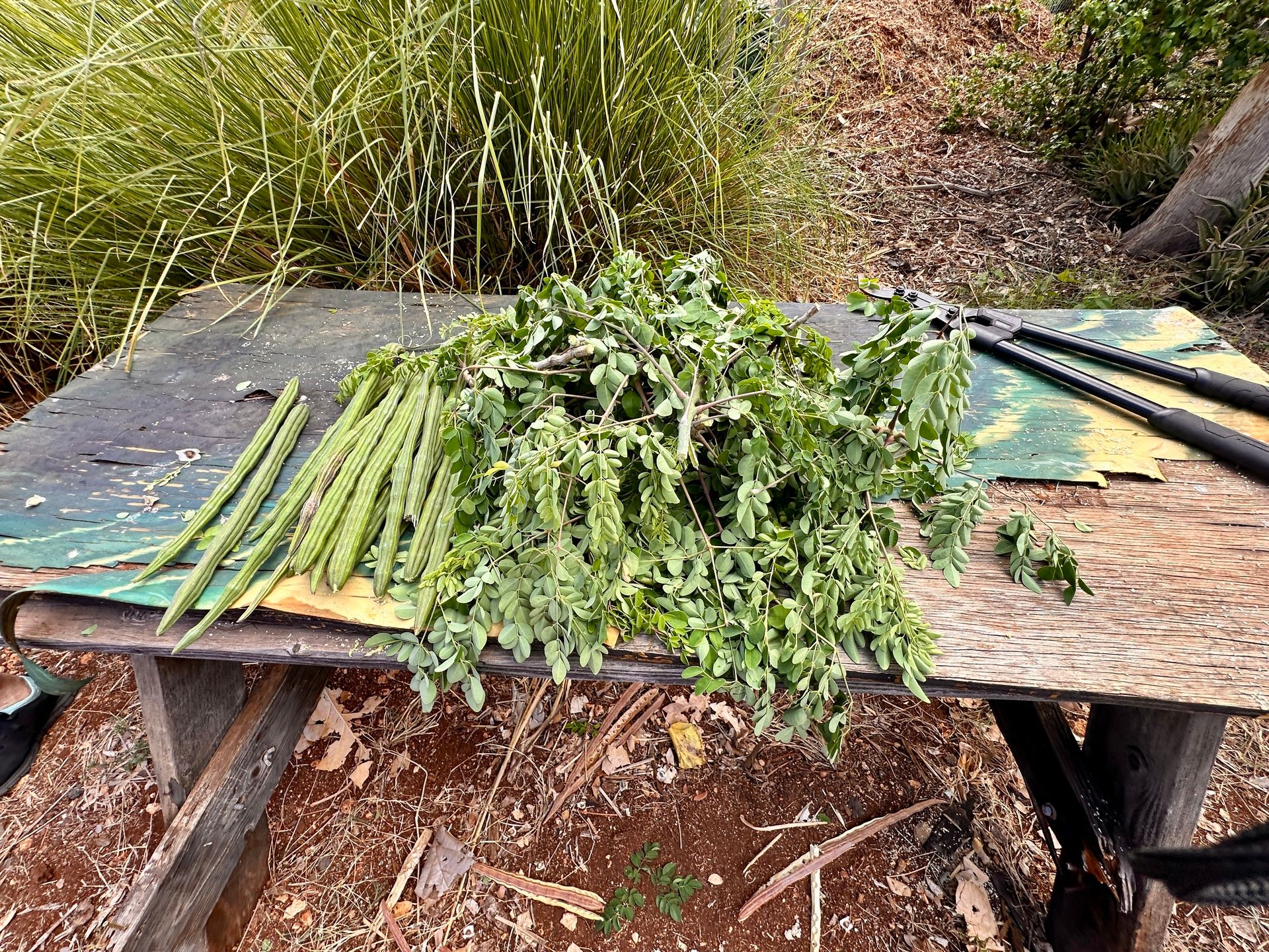 Throughout the workday we were encouraged to enjoy the fruits of our labor: lilikoi fruits were already picked and offered in a bag for us to take, moringa (also known locally as malunggay) cuttings and fruits were placed on a table, and Surinam cherries were plucked fresh from the tree for tasting.
