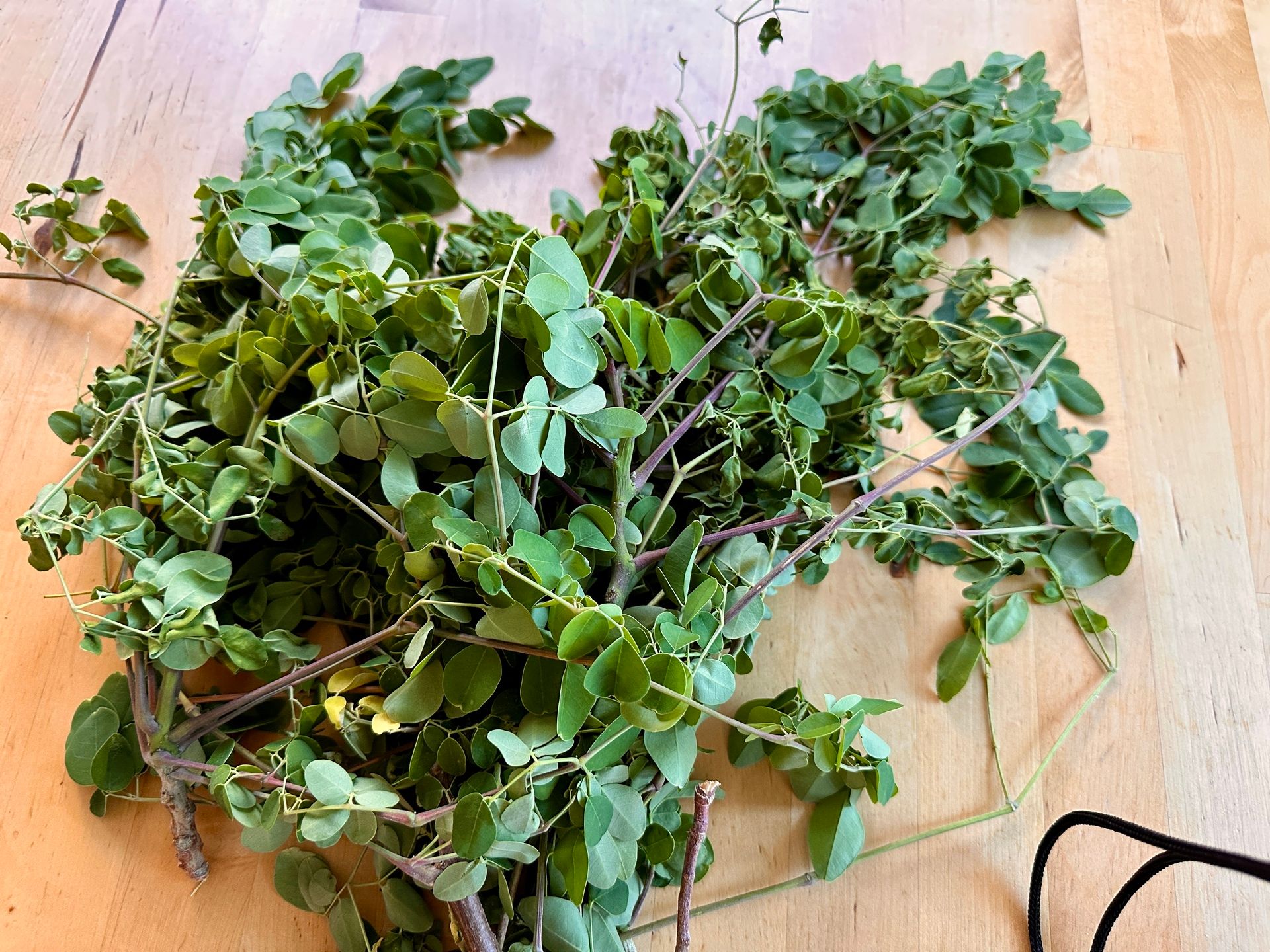 You can now find moringa in powder, tea and pill form on store shelves — but it’s considered an easy tree to grow, so you’ll likely be able to obtain fresh leaves from someone who has one in their yard. I happened to get a bunch from a recent Community Workday at Surfrider Foundation’s Kaka’ako Ocean Garden, and decided to try something different than what I had grown up with.
