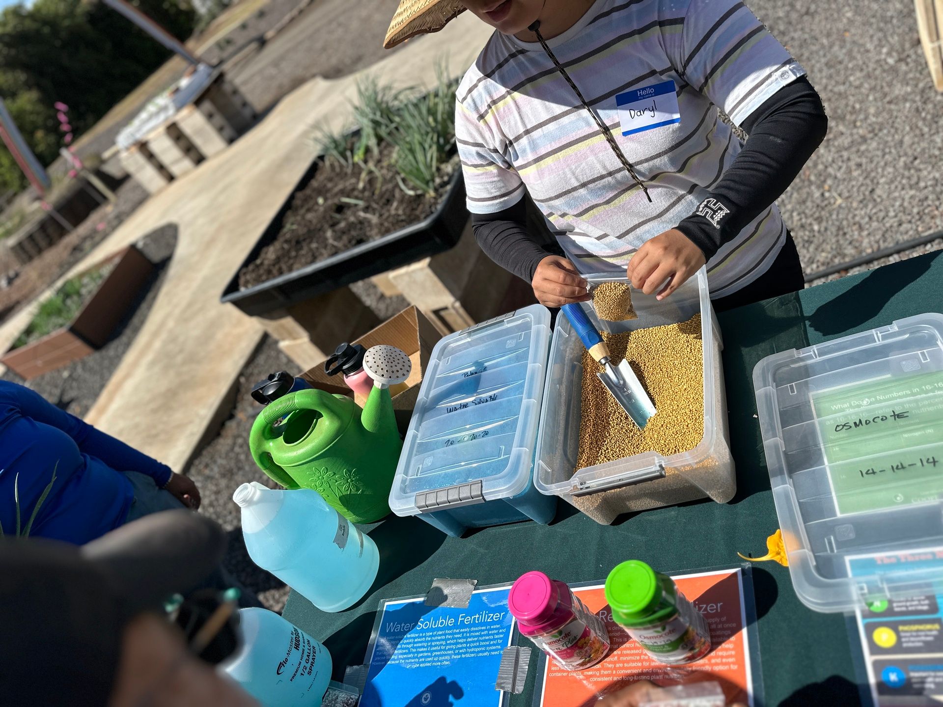 In the middle of the raised bed gardens, they had set up a fertilizer information station where you could get all your questions answered about how to set up your garden for success with the proper fertilizer. They even gave a small bag of fertilizer to take home with you!